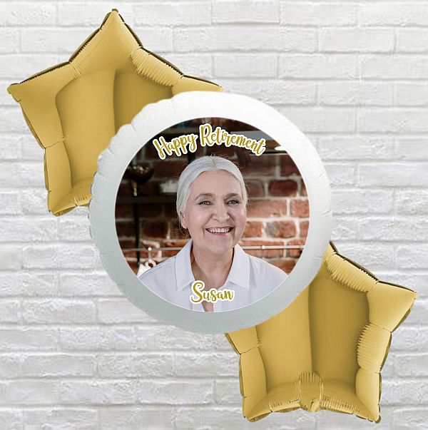 Our Gold Happy Retirement Photo Balloon comes inflated with helium gas, attached to a ribbon, and tied to a balloon weight. It also comes bagged for your convenience. Photo Balloons are approximately 44cm in size when inflated and will float up to 5 days.